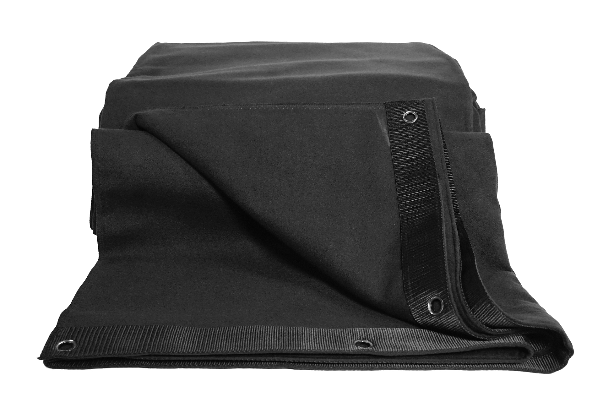 Fondale in tessuto molton resistente, 440 gr/mq, 6 metri di altezza x 4 metri di larghezza, con occhielli ogni 300 mm sul bordo superiore laterale di 4 m.