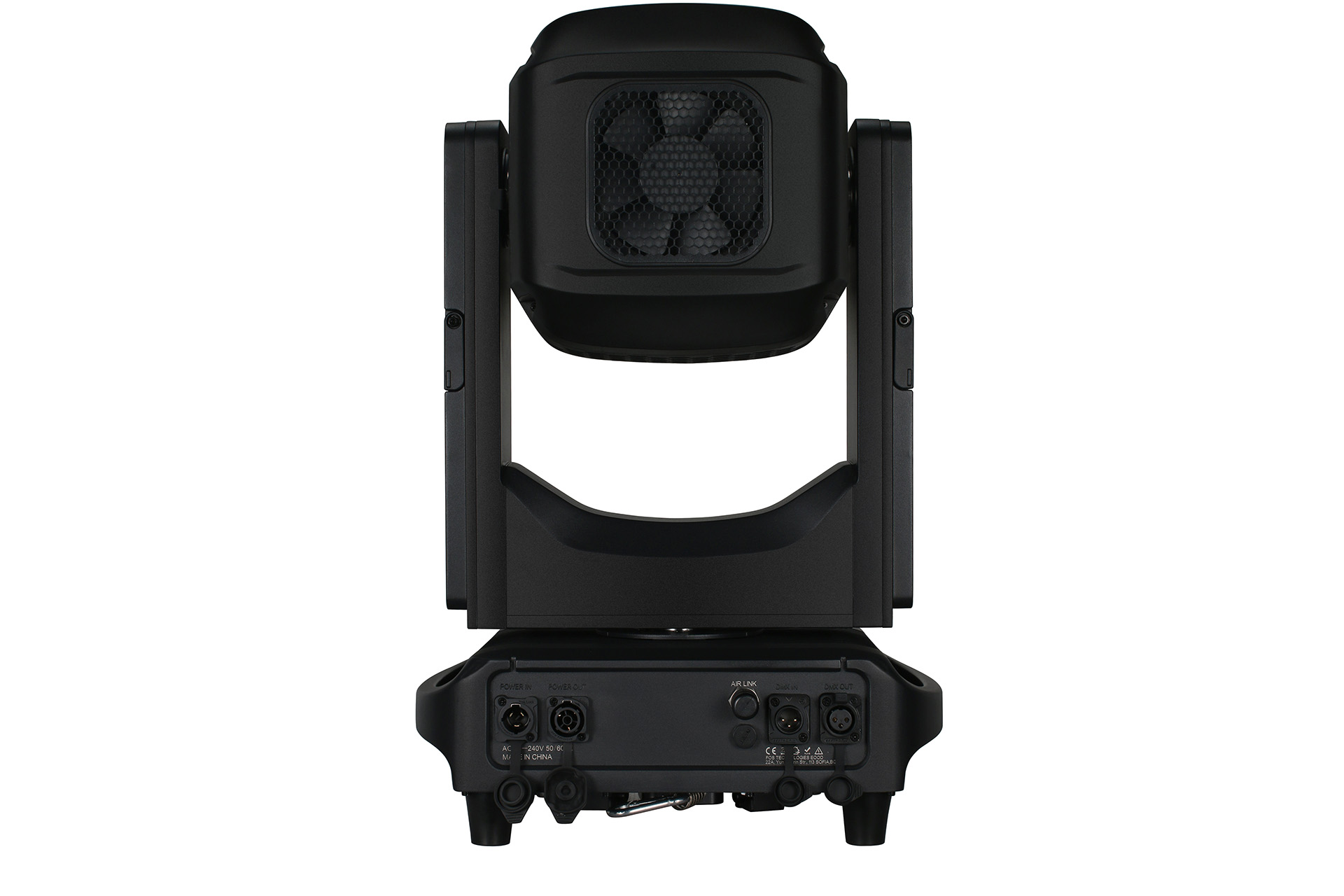 Innovativo proiettore a testa mobile Beam per esterni IP66 con CMY, potentissima sorgente luminosa Philips 420W LL, durata: 3500 ore, temperatura colore: 7800K, CRI fino a 77, diametro lente: 180mm, angolo del fascio: 1,7 gradi, sistema di miscelazione colori CMY e CTO lineare 3600-6600K, selezione creativa di 6 prim, 12 colori dicroici, 17 gobo statici, frost lineare pesante 15ยฐ per effetto wash, sistema di messa a fuoco elettrica, corpo in magnesio e alluminio IP66, DMX wireless, Seetronic PowerCon True1 IN/OUT, 26 kg
