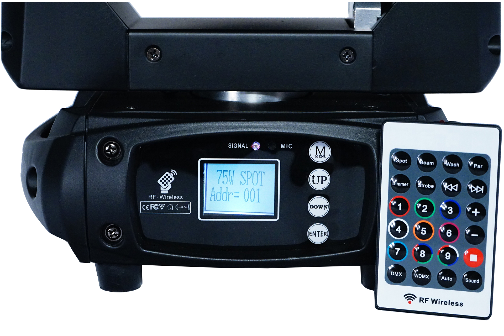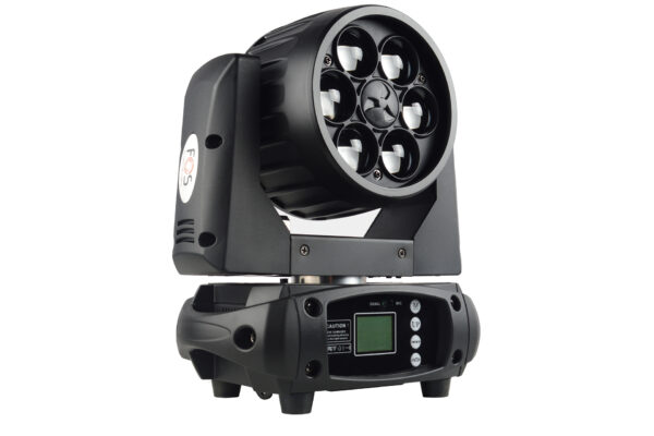 Testa mobile wash a LED, 6 LED RGBW 4-IN-1 da 15 W, zoom lineare elettronico da 6° a 60°, 13/15 canali DMX, ingresso/uscita Powercon,