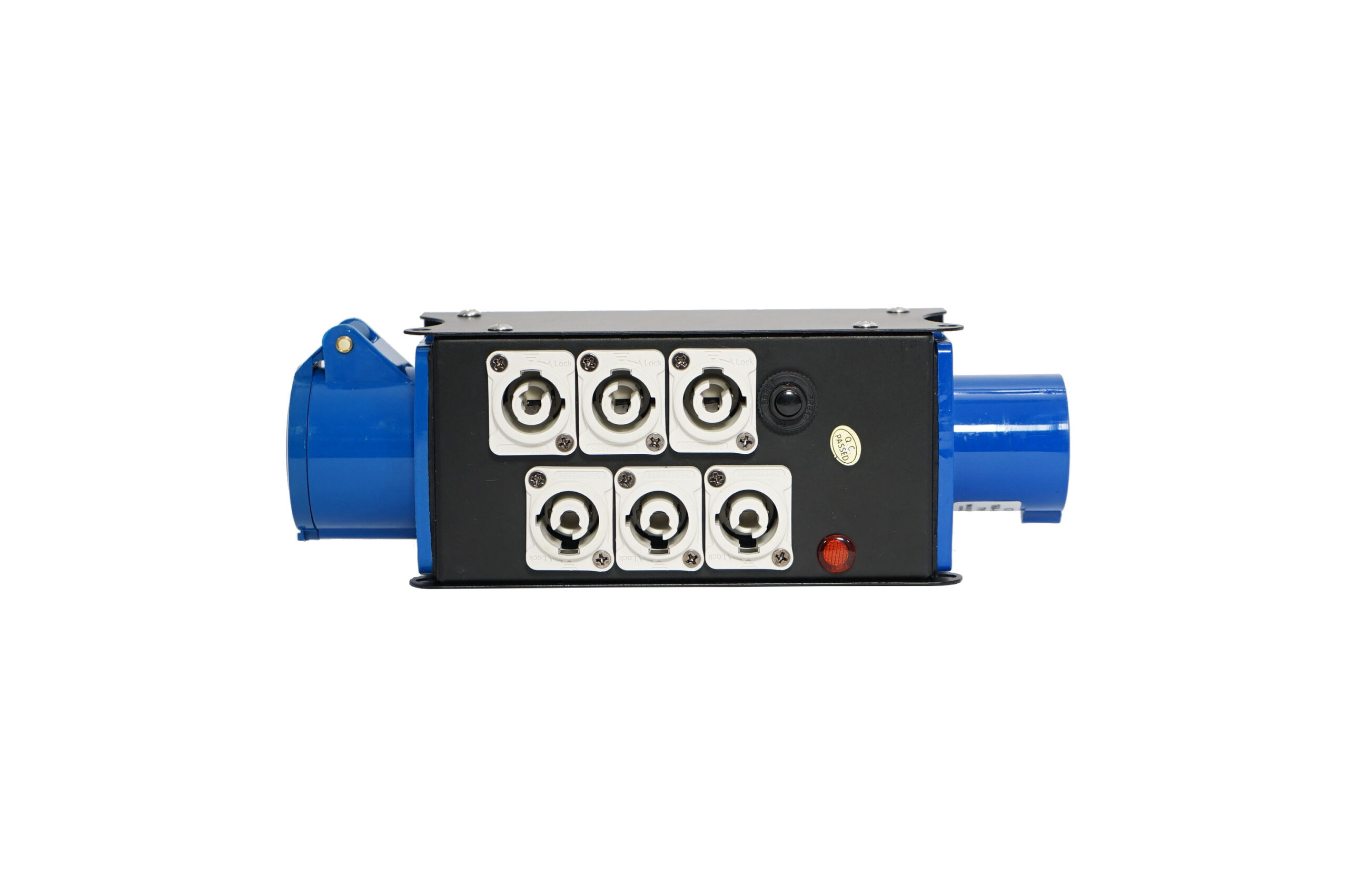 Powercon Power Box 16A – Ingresso CEE a 3 pin, 6 pezzi Powercon grigi, con gancio per un facile utilizzo, Dimensioni: 24x17x8 cm.
