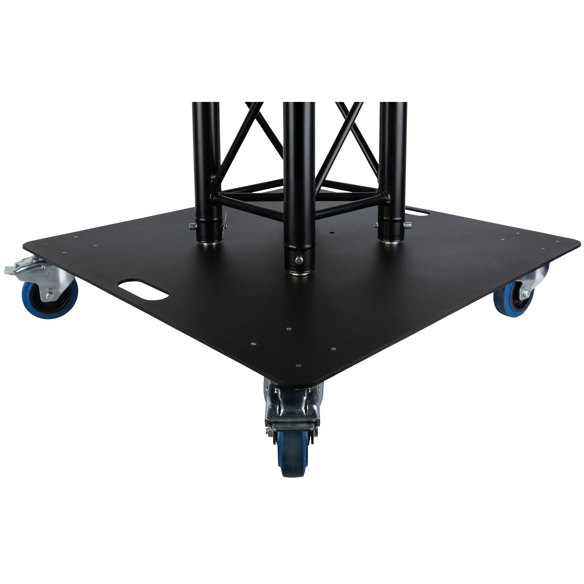 La piastra di base per truss universale 750 con ruote è progettata per i truss Pro-30 a gradini, quadrati e a triangolo. Realizzata in acciaio di 6 mm di spessore per prestazioni robuste, le incisioni al laser sul lato inferiore della piastra e i fori svasati M10 contribuiscono a semplificare l’installazione del truss. La piastra è ideale per realizzare torri di illuminazione per cambi rapidi, mentre le ruote Penn Elcom rendono la piastra facile da spostare.